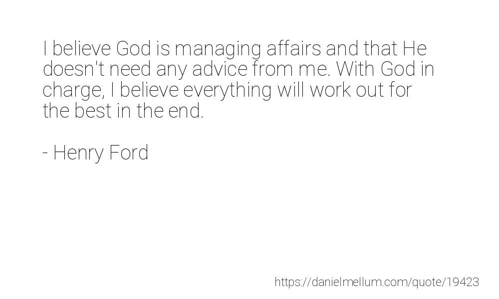 I believe God is managing affairs and that He doesn't need any advice from me. With God in charge, I believe everything will work out for the best in the end.